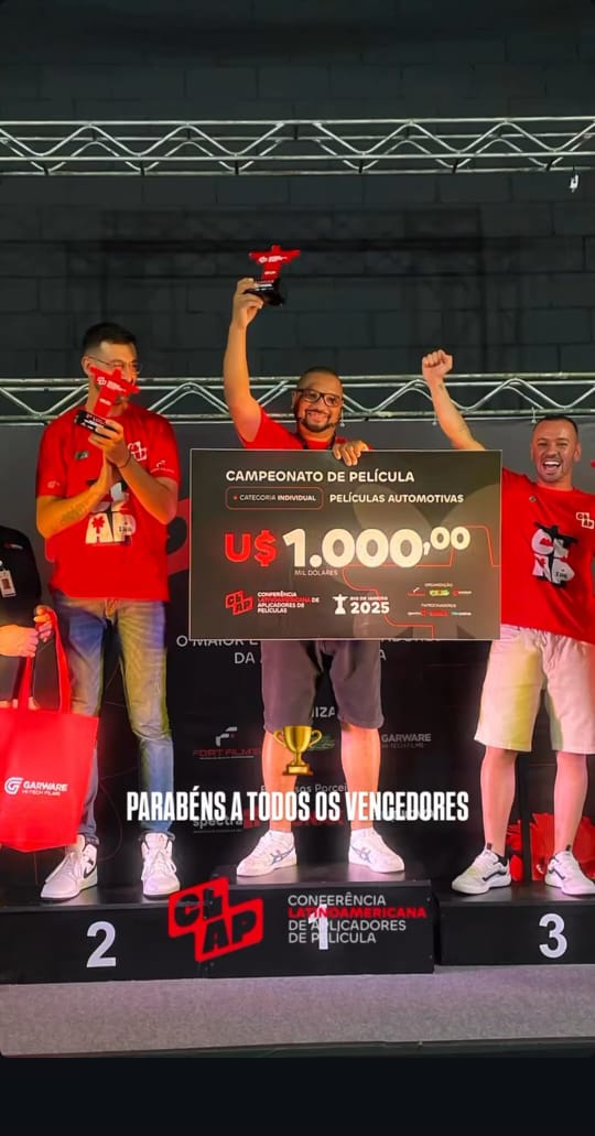Foi essa dedicação que, em 30 de dezembro de 2025, levou a empresa a conquistar o 3º lugar como Melhor Aplicação de Película de Controle Solar e também o 3º lugar na categoria Equipe de Aplicação, durante a CLAP — Conferência Latinoamericana de Aplicadores de Películas.
